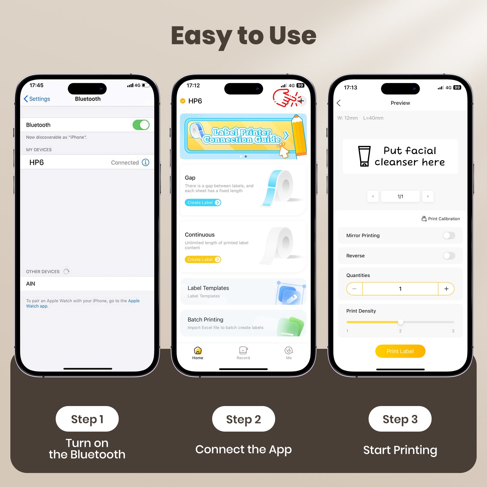 Wireless Bluetooth Connectivity & Portable Design: Mini label maker connects quickly through stable Bluetooth to iOS and Android phones. Its light 0.31 lb design fits easily in your bag so you can carry this small label printer on-the-go.